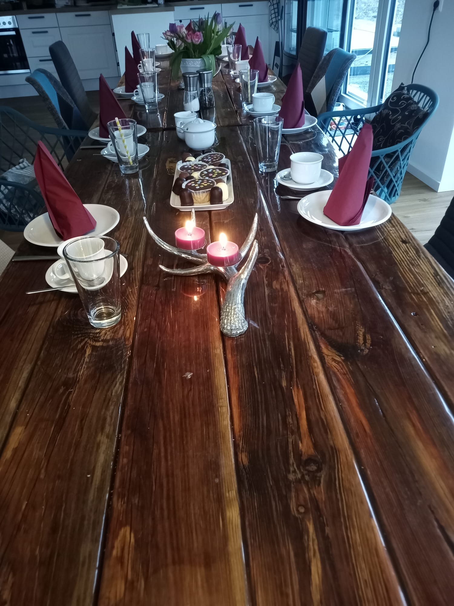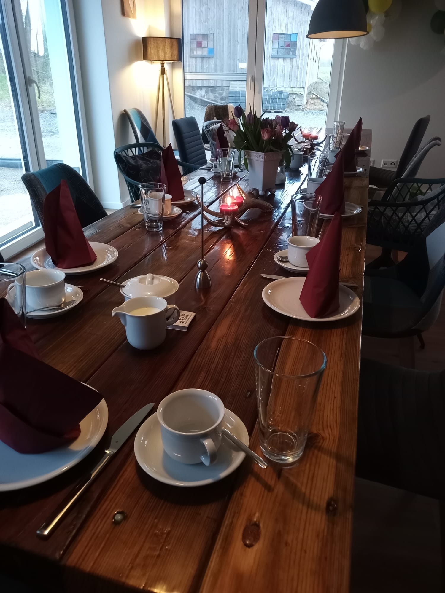Herzlich willkommen im Veranstaltungsraum von "Haus Seegaard"! Wir freuen uns, Ihnen unseren einladenden Raum für Veranstaltungen und Tagungen vorstellen zu dürfen. Unser Raum bietet Platz für bis zu 40 Personen und ist somit die ideale Wahl für Ihre Feierlichkeiten, Workshops oder geschäftlichen Treffen. Unsere Konditionen für die Nutzung des Raumes sind klar und transparent: Für lediglich 10€ pro Person stellen wir während Ihrer Veranstaltung Kaffee, Tee und Wasser bereit. Zusätzliche Verpflegungsmöglichkeiten können nach Bedarf hinzugebucht werden, und Sie haben die Freiheit, das Catering sowie die Getränke ganz nach Ihren Vorlieben selbst zu organisieren. Der Mietpreis für unseren Veranstaltungsraum beträgt 450€ pro Veranstaltung. Die Dekoration kann optional dazu gebucht werden, um Ihrer Veranstaltung eine persönliche Note zu verleihen. Wir stehen Ihnen gerne bei der Planung und Durchführung Ihrer Veranstaltung zur Seite und freuen uns darauf, Sie und Ihre Gäste bald im Veranstaltungsraum von "Haus Seegaard" begrüßen zu dürfen! Für weitere Fragen stehen wir Ihnen jederzeit zur Verfügung.
